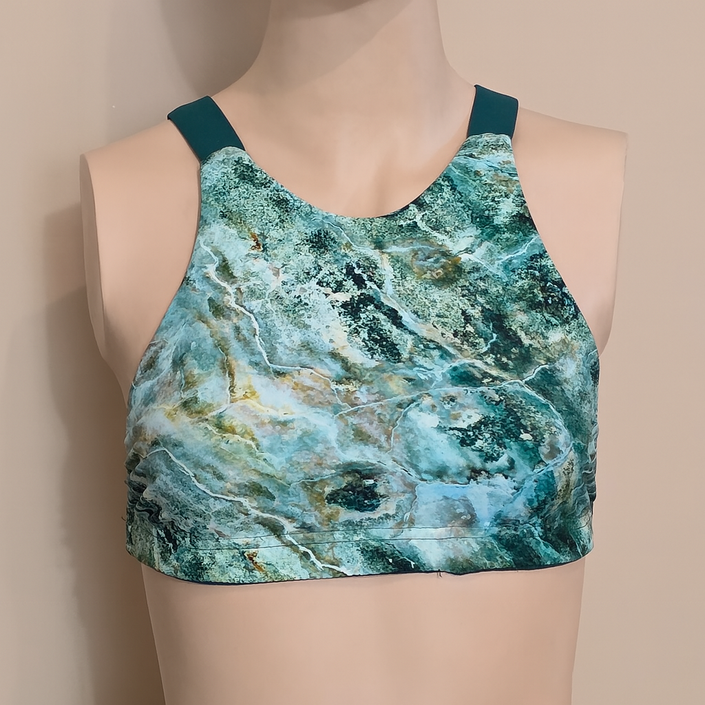 Reborn in rich green marble, the Phoenix Top is elegance forged in fire. This bold, sculpted silhouette features a secure high neckline and a dramatic strappy open backβ€”like wings ready to rise.