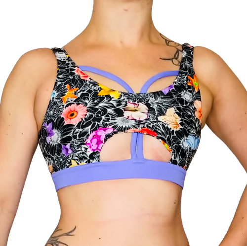 The new Butterfly Bralette features all the cute-ness of a bralette with the support of a sports bra! You’ll feel secure in this wide strap style as the material hugs your curves while looking sexy with this underbust cutout and strappy accents.