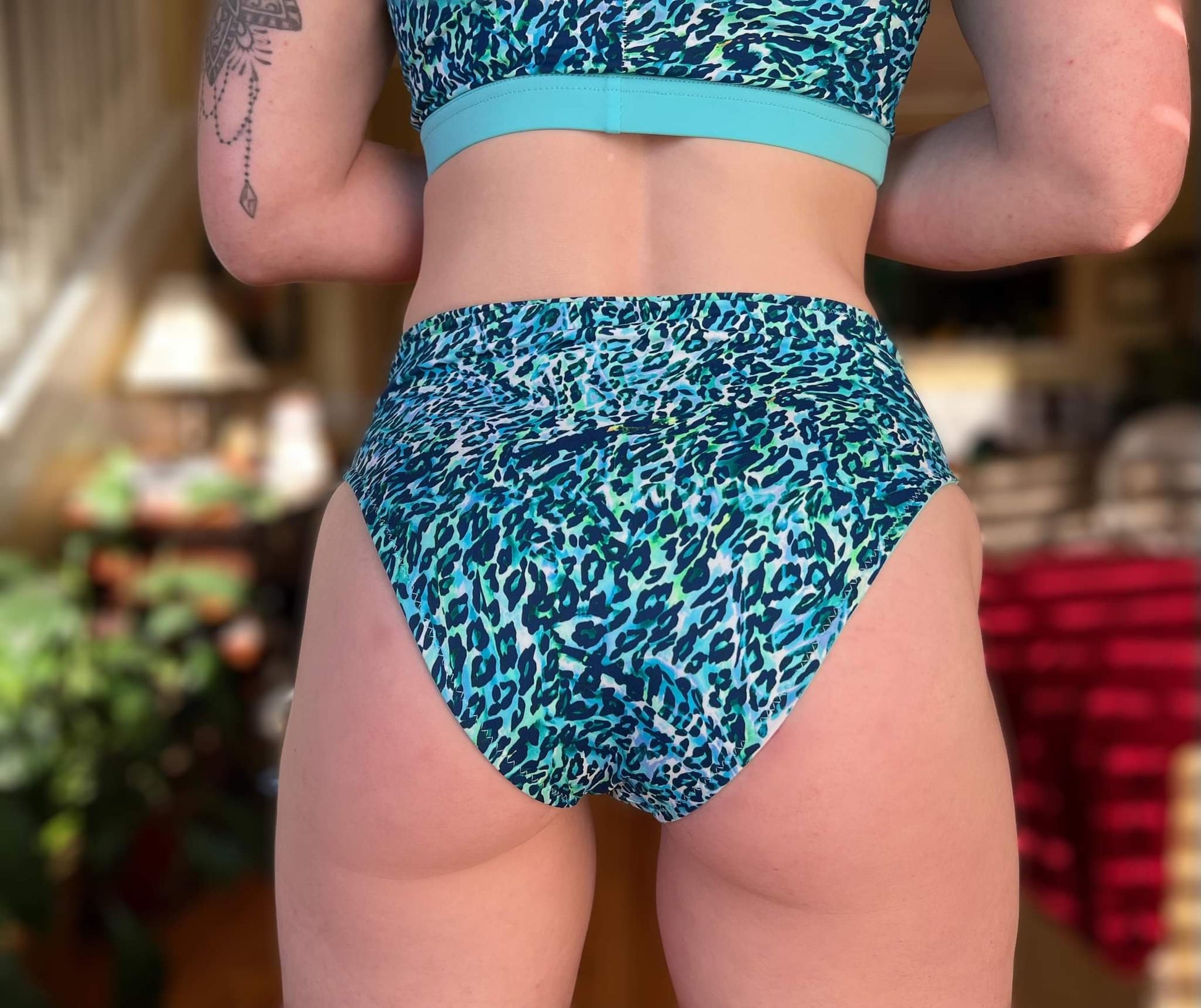 The Fifi bottoms are a classic mid-high rise bottom that’ll make you feel like a retro movie star! These reversible bottoms have moderate hip coverage to hug your curves in all the right places while giving a higher rise to give just enough to hide your tummy. Wear it either on the printed or the solid side, these two looks in one bottom give you ultimate versatility in your style!