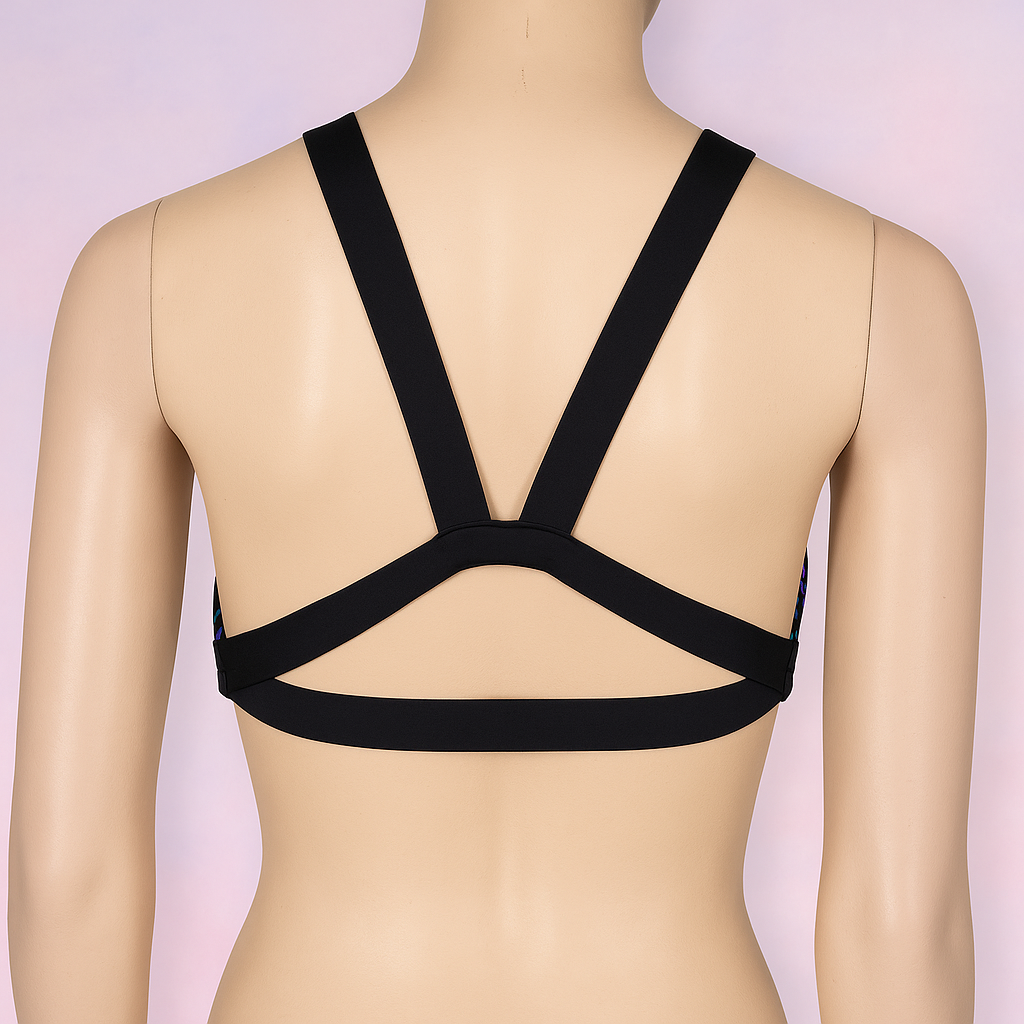 But turn around, and the magic unfolds. A striking open back with wide, crisscrossed straps creates a sculptural silhouette—fierce and feminine, like wings mid-flight. The wide bands offer extra support without sacrificing style, keeping you held and lifted through every powerful motion.